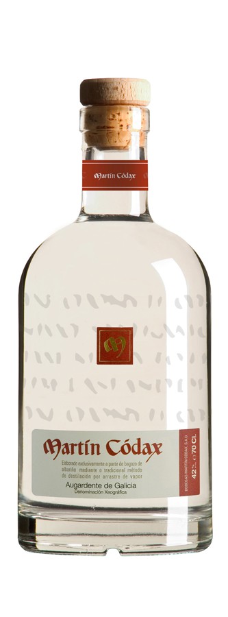 Aguardiente Blanco Martín Códax (Albariño) TASTING NOTES: Color: Orujo Blanco Martin Codax color is bright and clear, perfectly transparent with silver tones. Smell: Intensely aromatic, which highlights finesse. Harmonious, with persistent feelings of apple, herbs and exotic fruits Taste: The palate is sweet, hot and retronasal with structured and offers Albariños memories. ALCOHOL: 42% Vol COUNTRY: Spain